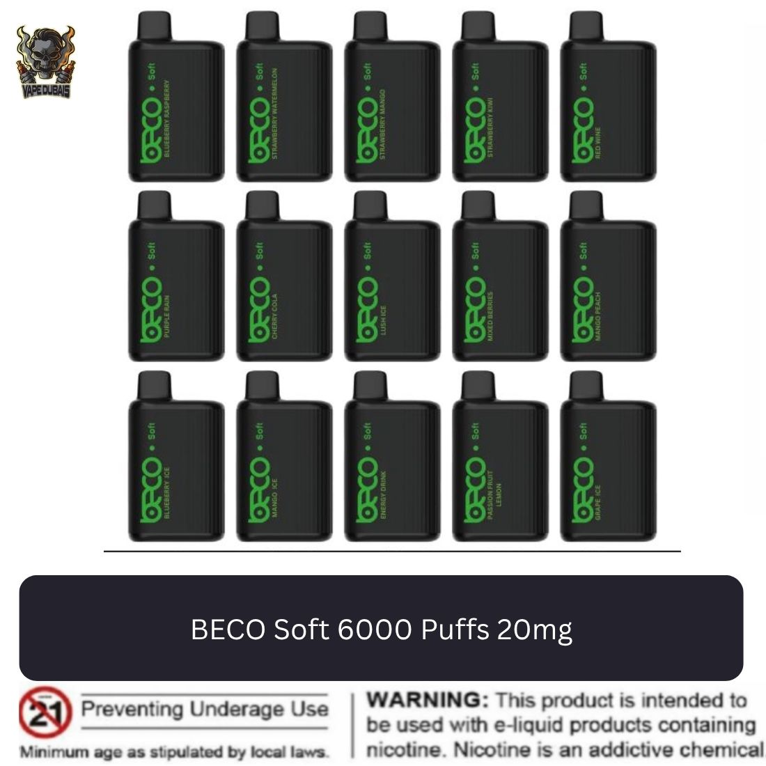 Flavors of  BECO Soft 6000 Puffs Disposable Vape
