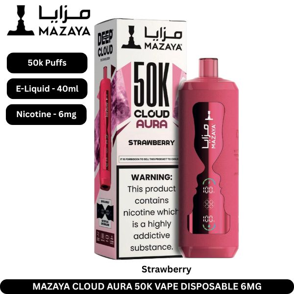 The Mazaya Cloud AURA 50000 Puffs Disposable Vape is a premium choice for anyone looking for a long-lasting, feature-rich disposable device. With its massive puff count, rechargeable battery, and smooth mesh coil performance, it delivers both convenience and quality.