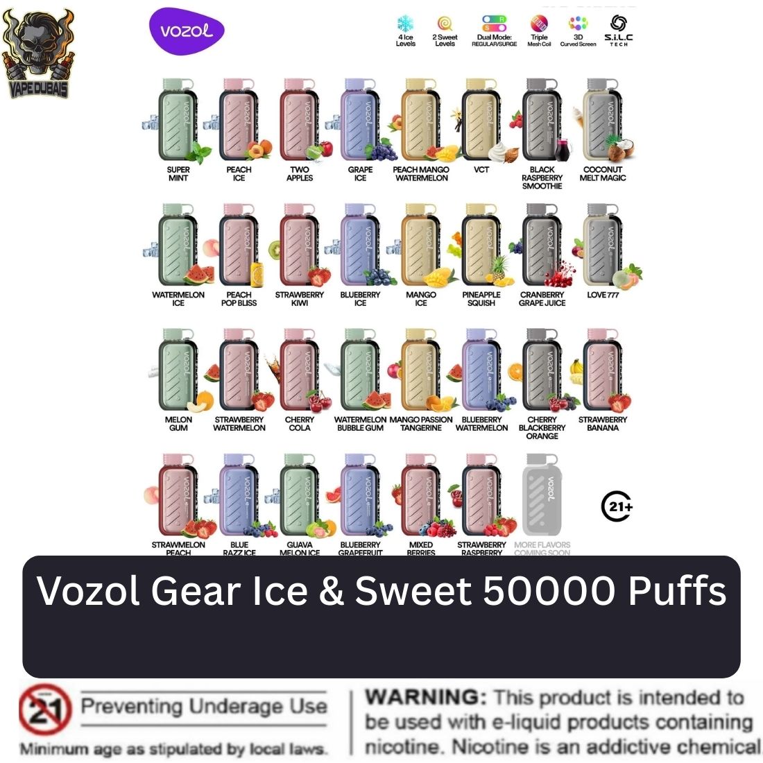Specifications of Vozol Gear Ice & Sweet 50000 Puffs
